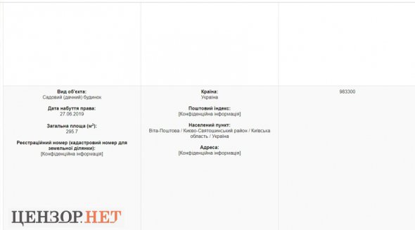 В представленной 5 июня декларации за 2019 год народный депутат указал, что в июне прошлого года приобрел дом в селе Вита-Поштова в Киево-Святошинском районе, сообщает Цензор.нет