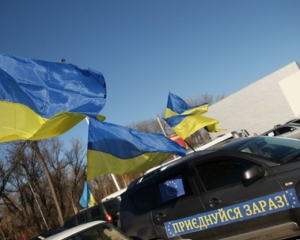 Когда участники Автомайдана попытались проехать, блокирующие движение люди вступили в словесную перепалку с активистами. Водители-участники Автомайдана время от времени нажимают на клаксоны, однако шансов, что колонна сможет выехать с заблокированной площади, практически нет.