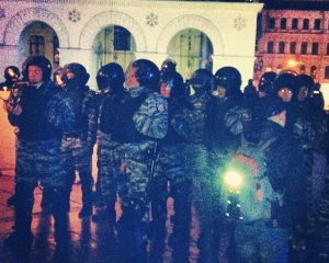 Однако, на углу ул. Институтская и Крещатик со стороны Европейской площади, осталось караулить более 100 милиционеров. Неизвестные в масках остались у фонтана основателям Киева.