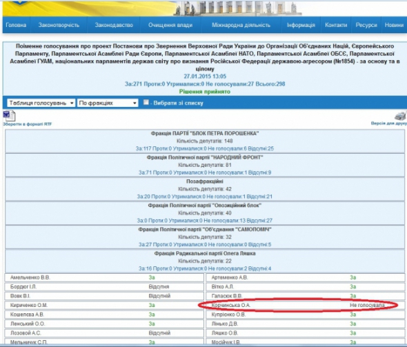 Убедиться в этом можно, зайдя на сайт Верховной Рады и просмотрев информацию об электронной регистрации народных депутатов, а также список поименного голосования за соответствующий проект постановления.