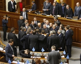 Фракция "БЮТ-Батькивщина" собралась возле трибуны Верховной Рады.