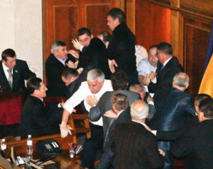 Во время драки в Верховной Раде в четверг на бютовца Владимира Бондаренко напали трое регионалов.