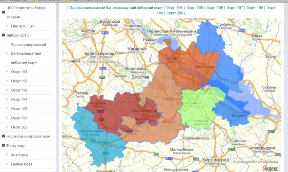 "Главная фишка - это интерактивная карта нарушений. На основе Яндекс карты мы нарисовали избирательную карту Черкасщины, разделенную на округа. Когда поступает информация о нарушениях, то на населенном пункте появляется метка. Наведя курсор на метку, можно подробно ознакомиться с количеством и содержанием нарушений, - рассказал координатор проекта "Черкасщина: защитим выбор" Юрий Сас во время пресс-конференции в Черкассах. - Также будет определен источник информации, это может быть деятельность нашего наблюдателя, сообщения в СМИ, ведь 90% всех нарушений фиксируются средствами массовой информации. Источником может быть информация, которая поступила от пользователя интернет-ресурса, но будем публиковать такие данные только после проверки, чтобы не распространять провокационную информацию".