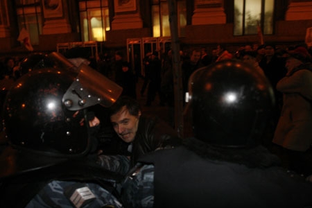 "Один из них держал меня двумя руками за горло, удушая до хрипоты. Два других коленями выдавливали воздух из легких, а четвертый кричал и с силой топтался по ногам. Имея давнее ранение легких, я умолял их не душить меня и позвонить руководителю Киевского спецподразделения "Беркут" - полковнику милиции Владимиру Александрову, на что они ответили: "Мы сюда приехали из Чернигова и никому звонить не собираемся", - рассказал Gazeta.ua Ушинский.