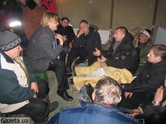 23 ноября вечером он пришел в палаточный городок, где по-прежнему ночует около 50 инвалидов-чернобыльцев, большинство из которых участвует в голодовке. Они добиваются возвращения пенсий, урезанных с 1 ноября.