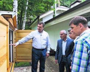 Президент Виктор Янукович в Межигорье показал журналистам нестандартное сооружение: на двух закрытых ульях стоит деревянная мини-избушка, внутри – что-то вроде постели.