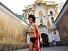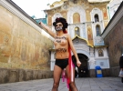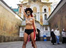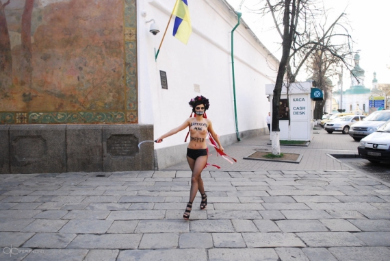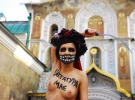 Активистка FEMEN возле лавры демонстрировала на теле надпись: "Диктатура должна умереть"