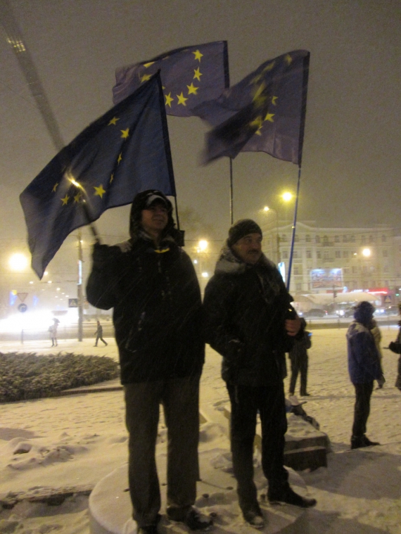 На донецком евромайдане люди продолжают собираться дважды в сутки. В воскресенье возле памятника Шевченко на протяжении дня митинговали около 400 человек. Вечером в понедельник в Донецке поднялась метель, объявили штормовое предупреждение, но на евромайдане собралось около ста человек.