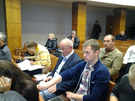 В зале также присутствует группа поддержки Довгого, которые аплодисментами воспринимают каждое решение комиссии в его пользу.