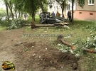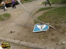 Дорожное приключение произошло между двумя пешеходными переходами. Автомобиль буквально летел к дому, и, если бы не посадка, мог бы оказаться в чужой квартире. Лихач сначала наехал на знак "пешеходный переход". От удара автомобиль перевернулся. Деревья, посаженные тридцать лет назад, помешали дальнейшему движению автомобиля.