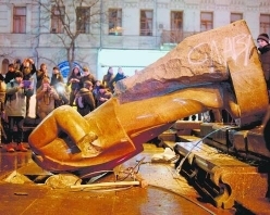 Напомним, памятник Ленину на Бесарабской площади Киева был снесен 8 декабря во время массовых акций протеста в связи с отказом правительства Украины подписывать соглашение об ассоциации с Евросоюзом. Протестующие свалили фигуру большевистского лидера с постамента и частично разрушили ее. Киевская милиция возбудила уголовное дело по статье о массовых беспорядках, однако о задержаниях пока не сообщалось.