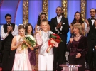 После объявления победителей она поздравила танцевальные пары и призналась, что ее дочки тоже участвовали в СМС-голосовании.