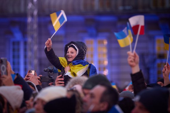Некоторые из них держали в руках национальную символику – флаги Украины и Польши. Кадрами с площади Зеленский поделился в Facebook.