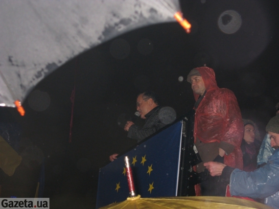 В частности, во время выступления народного депутата, лидера партии "Гражданская позиция" Анатолия Гриценко прямо под сценой пьяный парень начал выкрикивать нецензурные слова и обвинять политиков в пустословии.