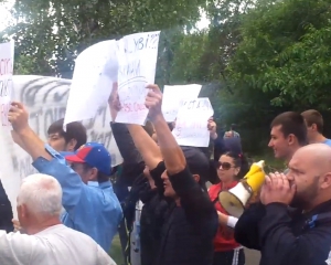 В Сумах представители оппозиции пикетировали приезд президента Виктора Януковича криками "Фашизм мешает пакращенню!".