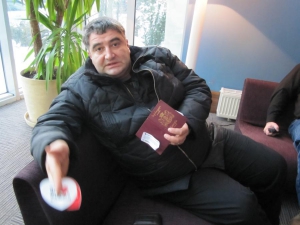 Прежде чем ответить на вопрос, кем работает в Грузии, Дмитрий советуется с товарищами на родном языке, потом говорит, что работает на текстильной фабрике. Не позволяет себя фотографировать вместе с соотечественниками.