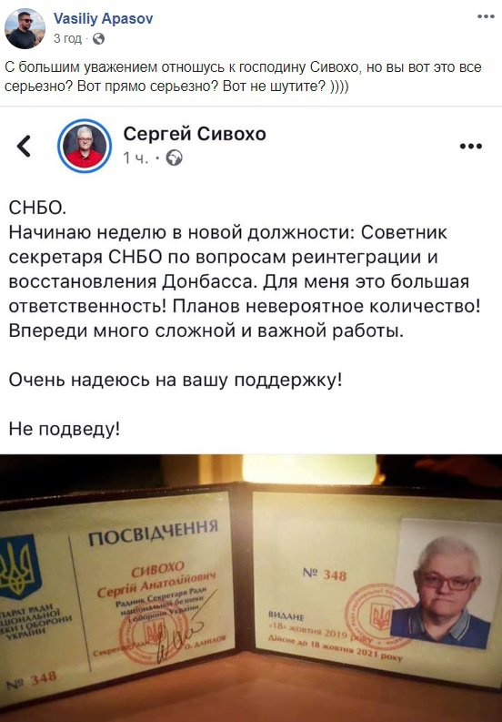 Пользователи активно комментируют новую должность Сивохо. Большинство - скептически.