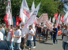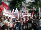 Сейчас под МВД митинг продолжается. Люди держат флаги трех оппозиционных сил. Однако как уверяет Каплин вечером на митинге, который запланировали общественные активисты и другие участники шествия, не будет никакой партийной символики.