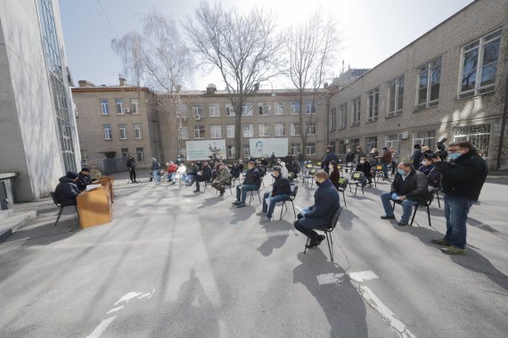 В условиях карантина Днепровский городской совет в среду открыл очередную сессию во дворе.