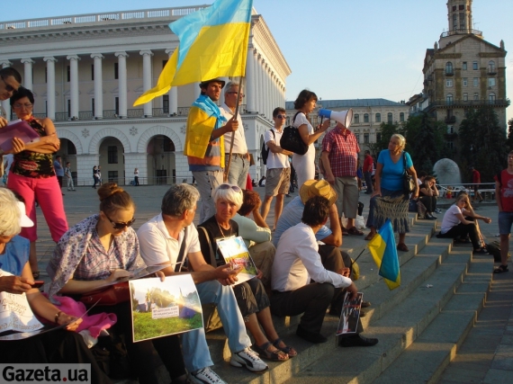 На бордюре цветника перед Монументом Независимости лежат пакеты с различной едой. Ее все время приносят жители столицы для Врадиевских активистов.