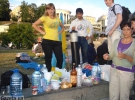 Активистам, которые пришли пешком из Врадиевки Николаевской области в Киев на Майдан Независимости, протестуя против произвола милиции, киевляне приносят еду и воду.