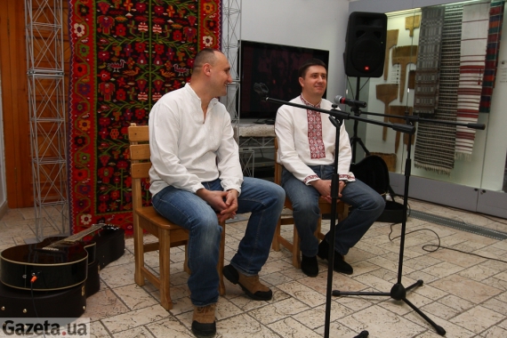 В помещении киевского музея Гончара собралось три десятка человек. Среди них - жена и дочь "нунсовца". Кириленко и Фома были одеты в джинсы и вышивки. "Червону калину" пели трижды, играли на акустических гитарах, говорили о политике.