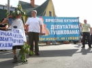 На въезде в поселок возле гостиницы "Софиевский посад" в 8.00 в понедельник, 1 июля, собирается с десяток пожилых людей. Они пришли протестовать против народного депутата Вячеслава Кутового, недавно покинувший фракцию "Батькивщина", от которой был избран на 95 округе.