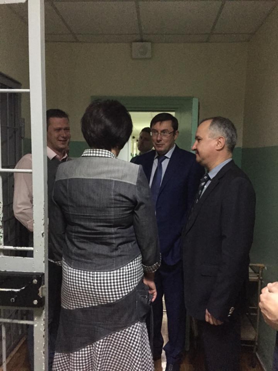 Генпрокурор Юрий Луценко, председатель СБУ Василий Грицак и уполномоченный Верховной Рады по правам человека Валерия Лутковская проводят внеплановую проверку следственного изолятора СБУ в Киеве.