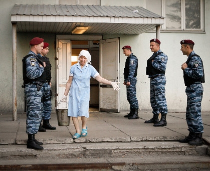 Около 5:30 в больницу подъехала машина спецподразделения милиции с номерами прикрытия, позже в больницу подъехала еще одна машина "Беркута", ребята надевали бронежилеты.