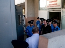 Самого Луценко вывезли из больницы на "автозаке" "Газель" в сопровождении "мигалок" и "Беркута". По дороге в суд конвой заехал на территорию Лукьяновского СИЗО, откуда Луценко вывезли в суд другой машиной.