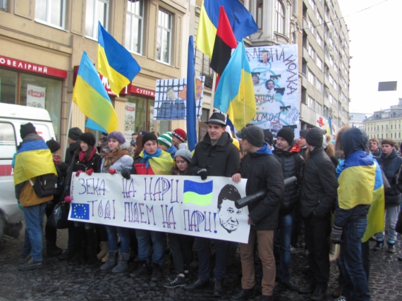 Если наш универ забил на забастовку, то чего мы это должны делать. У нас своя твердая гражданская позиция! Мы не хотим жить в стране, в которой руководит зэк и где бьют мирных людей!, - Говорит студент "Львовской политехники", 23- летний Владимир.