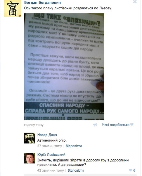 Учитывая все вышеприведенные факты и неоднократные заявления Михальчишин и "Свободы" о том, что только они должны быть единственной уличной политической силой во Львове, можем понять причины давления на общественных активистов.