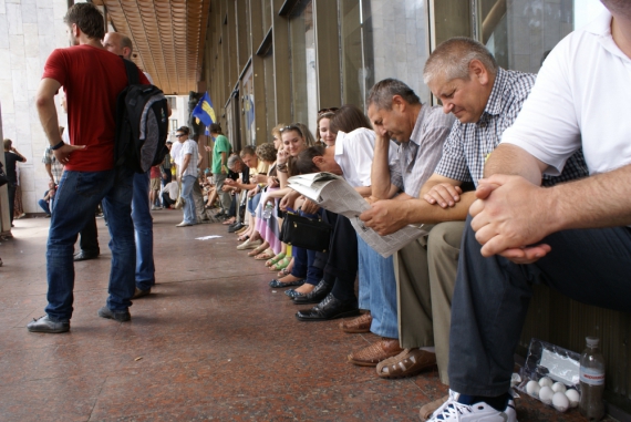 Протестовать под Украинский дом против принятого в Верховной Раде закона о принципах языковой политики люди пришли с сырыми куриными яйцами.