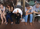 Проходя между митингующими, можно увидеть заготовленные лотки с яйцами или просто на яйца, спрятанные между вещами. Например, вдоль бордюров, на которых седят, или за колоннами.