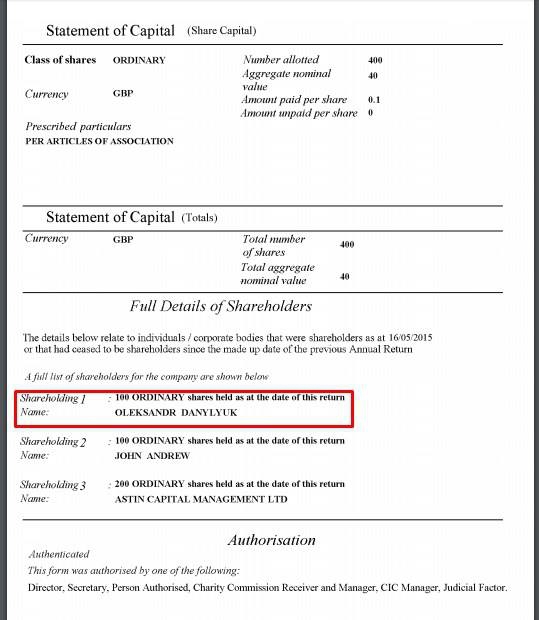 Активист нашел соответствующую информацию на сайте фирмы Companies In The UK.