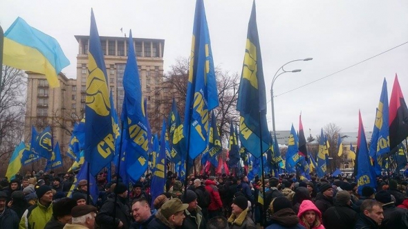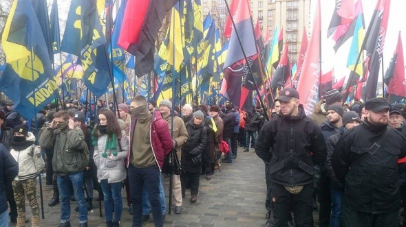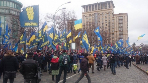 Около 10:00 20-тысячная колонна двинулась от станции метро Крещатик к ​​Верховной Раде. Ее возглавляют лидеры "Свободы" Олег Тягнибок, "Национального корпуса" Андрей Билецкий и "Правого сектора" Андрей Тарасенко.