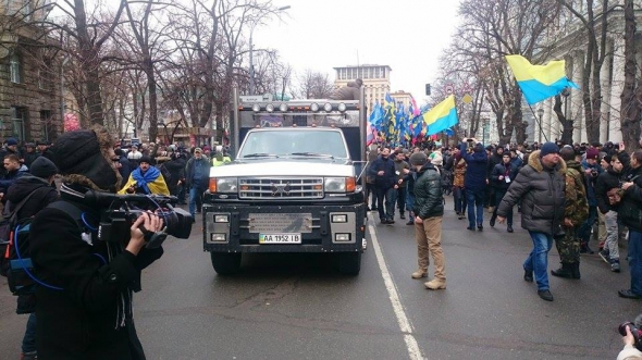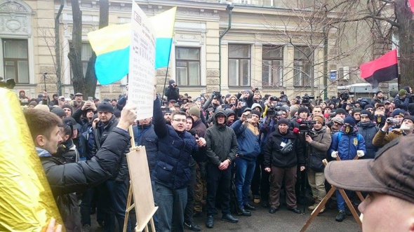 Его организаторы - "Свобода", "Национальный корпус" и "Правый сектор". Мероприятие приурочили к третьей годовщине побега бывшего президента Виктора Януковича.