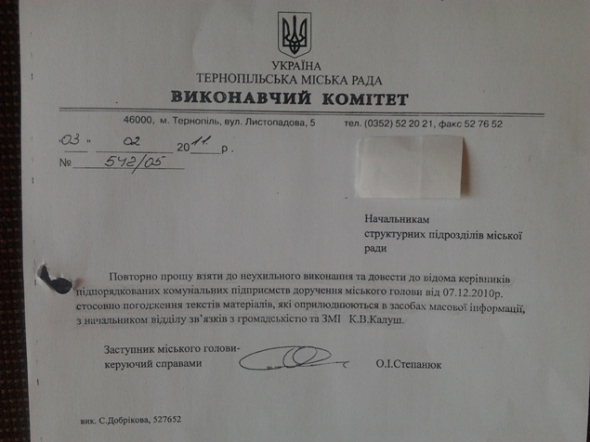 Глава города объяснил, что такое поручение было сделано для того, чтобы правильно информировать тернополян о том, что происходит в городском совете.