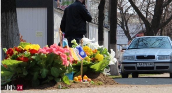 В Киеве прошла акция "Цветами по ямам в асфальте". Несколько активистов высадили прямо на пешеходной зоне в асфальте несколько горшков с цветами, чтобы привлечь внимание к ужасному состоянию дорог в столице. Для полной композиции активисты даже поставили между цветами игрушечную машинку.