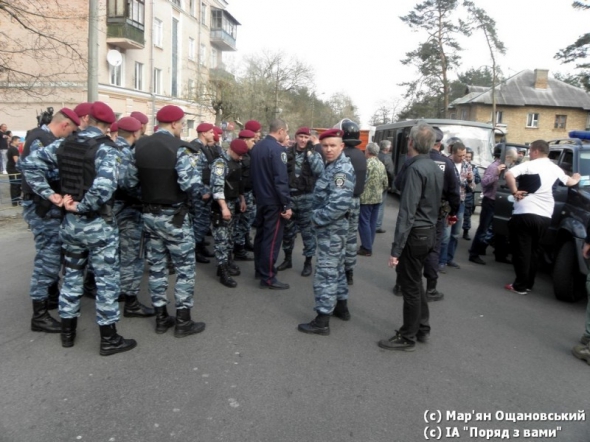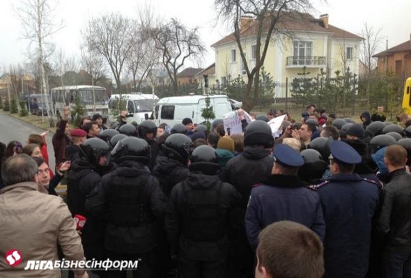 К "Межигорью" пришли около полусотни активистов. Буквально сразу после начала акции произошли столкновения между участниками и правоохранителями. Силовики окружили участников движения "Демократический альянс" в плотное кольцо и пытались оттеснить их от ворот резиденции. Нескольких активистов бойцы "Беркута" затащили в автозаки. После приезда на место высоких милицейских чинов, задержанных активистов отпустили.