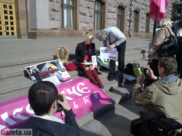 Около 40 человек от "Киевского вече" пришли под здание Киевсовета, чтобы требовать отставки главы КГГА. Они ему принесли самовар и ряд бубликов. Пикетчики требовали добровольной отставки Попова. На плакате написали слова переработанной песни: "Гудбай, Сашуля, гудбай, наш миленький. Ты в Комсомольск должен уехать навсегда. Так получилось, что мерство в Киеве таким, как ты больше не светит никогда".
