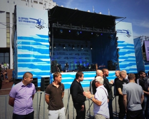 "В районе Парка славы и Музея Великой отечественной войны сформировалась колонна участников акции "В Европу - без фашистов" численностью 45 тыс. человек, которая направляется к Европейской площади", - отмечено в сообщении.