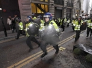 Ближе к вечеру основные события разворачивались на Трафальгарской площади. Как сообщали очевидцы, там полицейских обстреливали из ракетниц, однако столкновения нарушителей порядка с сотрудниками правоохранительных органов не произошло. Позже полиция объявила, что ситуацию на площади удалось взять под контроль, люди начинают расходиться.