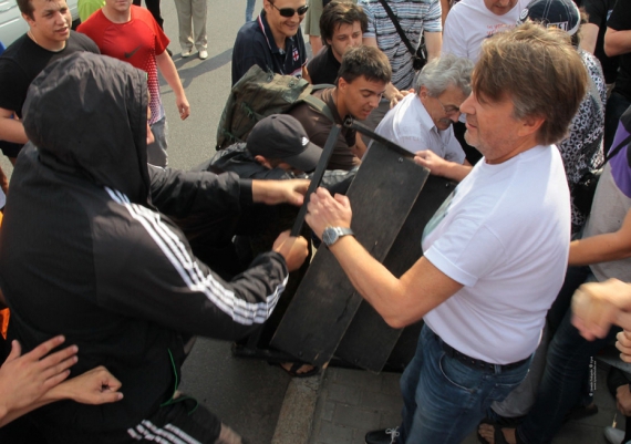 Cтычка произошла, когда сторонники экс-премьера попытались установить звукоусиливающую аппаратуру. К ним подбежали молодые люди в спортивных костюмах и начали толкать. Драчунов попыталась разнять милиция.