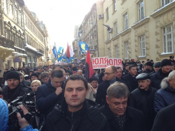 Отметим, пресс-служба "Батькивщина" сообщает о том, что на акции собрались около 10 тысяч львовян.