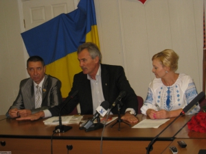"Месяц назад я говорил, что для победы еще до Покровы примем решение относительно единого оппозиционного кандидата. Мы проводили долгие и тяжелые переговоры, заказывали социологов, говорили с людьми на улицах. В результате, определились, что наибольшей поддержкой пользуется Николай Булатецкий. Я соблюдаю свои слова и снимаю свою кандидатуру с выборов. И призываю своих сторонников поддержать Булатецкого. Чтобы под куполом Верховной Рады интересы черкащан представлял достойный человек, а не представитель олигархов, типа Жуковских. Я остаюсь депутатом городского совета, руководителем городского штаба "Нашей Украины". Залог партии верну. - Сказал Владимир Мамалыга и добавил. - Мы вели еще переговоры и с Любовью Майбородой. Ранее она говорила, что будем искать от оппозиции более рейтингового кандидата. А вчера мне по телефону сказала, что не будет сниматься". Я искренне хочу обнять Владимира. А его жене подарить цветы, потому что без нее он бы не принял этот шаг. Оксана, мама троих детей, - Булатецкий поцеловал жену Мамалыги и вручил ей букет белых роз. - А теперь приглашаю к слову берегиню Холодного Яра Лесю".