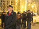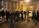 Неизвестные стояли среди участников акции до тех пор, пока кто-то не дал им команду удалиться. Две группы по 15 человек в каждой покидали территорию "евромайдана" практически строем. Так же в стороне за ними наблюдали другие спортивные мужчины – одетые преимущественно в черное.