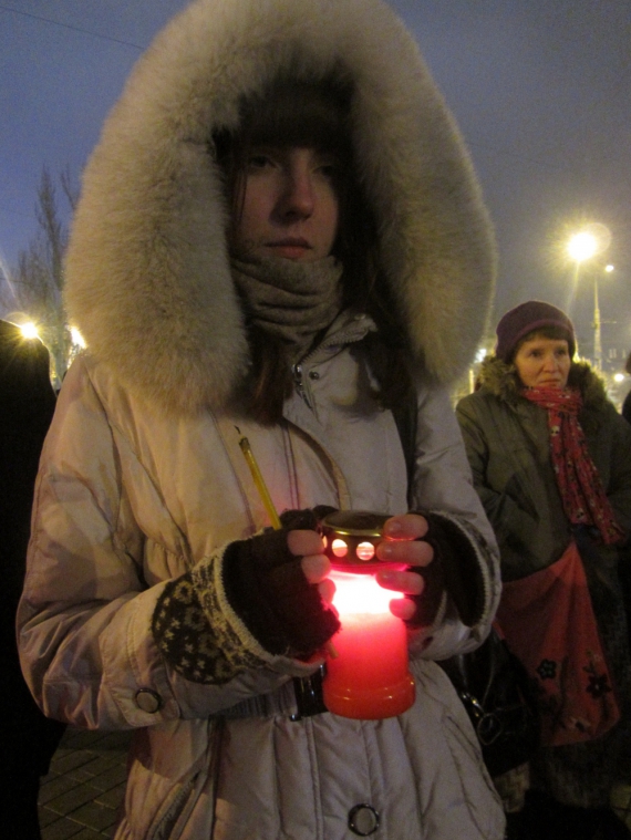 Вечером 23 декабря Вифлеемский огонь мира доставили на Майдан в Донецке.