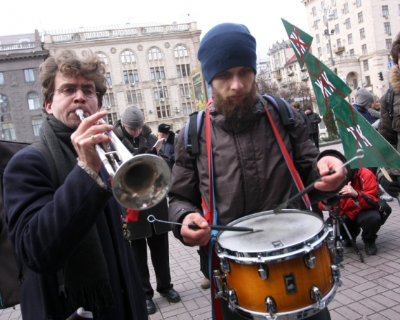 "Мы протестуем против нарушений прав человека в Украине. Недавно был снесен палаточный городок. Этим власти нарушили права людей на мирные собрания. Милиция ежедневно задерживает активистов. А этого делать нельзя. Также мы выступаем против трудового и жилищного кодексов. Если примут новый жилищный кодекс, то застройщики смогут выбрасывать людей на улицы из их собственных домов. Новый вариант трудового кодекса предусматривает увеличение рабочего дня до 12 часов. В таком случае наемные работники станут крепостными у работодателей ", - рассказал корреспонденту Gazeta.ua один из организаторов акции политолог Владимир Чемерис.