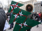 "Это наши подарки нынешней власти. Мы все это считаем мусором и не хотим с этим мириться. В нашей стране все зависит от воли одного закомплексованного человека. Он решил оторваться на всех людях за то, что все смеялись, когда на него упал венок из хвои. На центральные площади столицы он запретил мирное собрание. Воспользовавшись той самой хвоей ", - сказал представитель независимого профсоюза" Защита труда" Виталий.